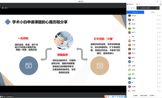 论文发表方面,鲁巧巧老师整理了国内外文献检索的主要途径,演示了文献管理工具的使用,列举了寻找目标期刊的注意事项,总结了成功发表论文的关键要素。