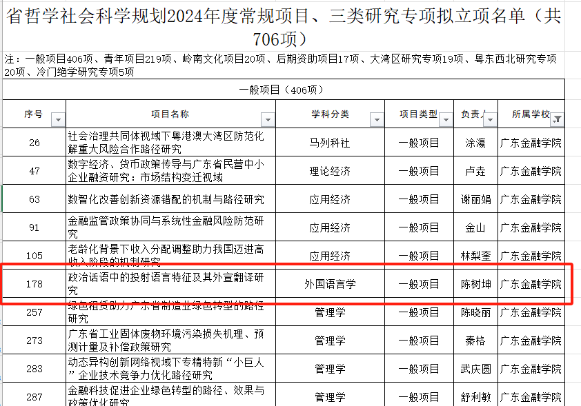 在最近公布的省哲学社会科学2024年度规划项目立项名单中,yl9193永利集团的陈树坤博士申报的《政治话语中的投射语言特征及其外宣翻译研究》项目脱颖而出,成功获得立项。