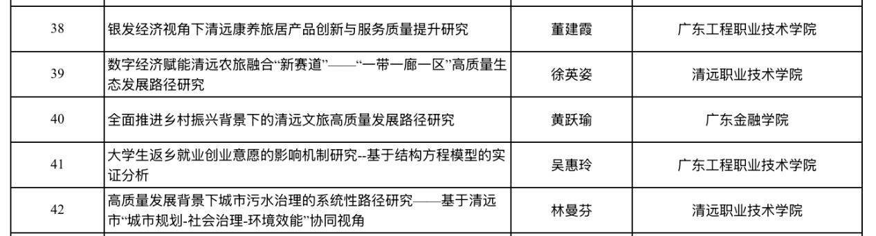 近日,清远市社会科学界联合会公示2025年度清远市哲学社会科学规划课题立项名单,我院日语系教师黄跃瑜申报的课题“全面推进乡村振兴背景下的清远文旅高质量发展路径研究”获批立项,热烈祝贺!