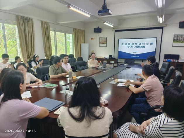 为提升学院教师课题申报与论文发表能力,搭建高效学术交流平台,4 月 27 日下午,区域国别研究所学术沙龙在外文学院 2417 会议室顺利举行。本次活动由陈树坤副院长主持,区域国别研究所成员及学院其他骨干教师齐聚一堂,围绕科研全流程关键问题展开深度交流研讨。