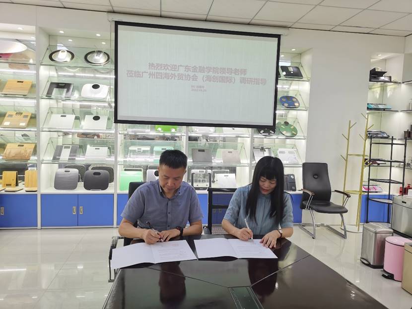 会议充分交流后,涂兵兰院长与参会的六名企业代表签署了实习实践基地协议,并参观了广州海创国际控股股份有限公司的样品室和办公区。此次与行业协会签约合作,对接了不同外贸企业,形成强大的集群力量,学院将与广州市四海民营企业家协会协同努力,探索人才培养新路径,并希望外文学子能够加强语言能力基础,戒骄戒躁,磨练实战能力,将来能在外贸行业独当一面,扬风启航。