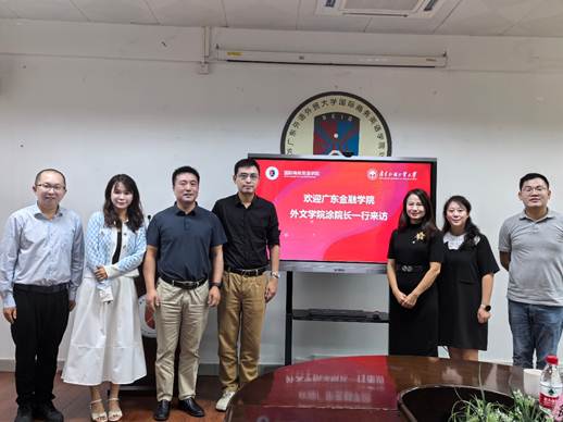 2023年10月17日下午14:30,yl9193永利集团陈树坤副院长带队,商务英语系系主任和教师一行人赴广东外语外贸大学商务英语学院进行调研学习。本次调研学习主要围绕着商务英语创新班设置、中外合作办学、人才培养方案、科研平台和实践教学基地建设等问题进行深入交流与探讨。