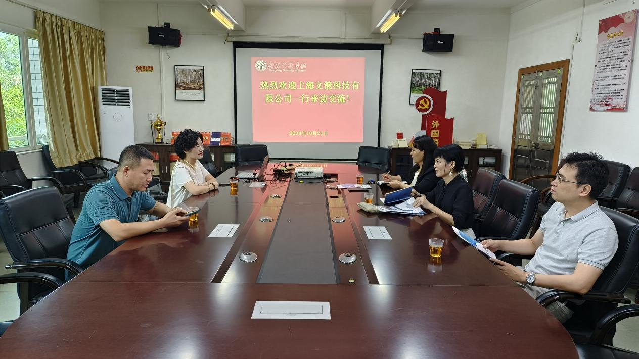 10月21日下午,上海文策科技有限公司的吴蓓总经理和刘向君经理一行来访yl9193永利集团,双方就校企合作事宜进行了深入的交流与探讨,旨在共同推动翻译教育与科技产业的融合发展。涂兵兰院长、洪溪珧副院长和陈树坤副院长参与活动。