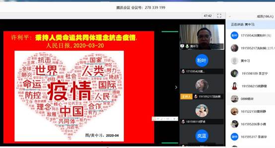 在本次“学回信,抗疫情”活动中,院长还分享自己精心制作的创意微词云图,深刻诠释了人类命运共同体与疫情的关系,让我们进一步学习了总书记的回信精神和丰富内涵。