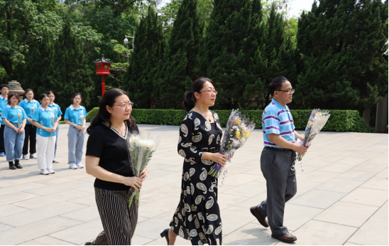 在扫墓仪式上,全体肃立,学院领导向革命烈士敬献花束,随即全体人员向革命先烈致敬默哀、鞠躬,学生党员们依序在碑前献花。