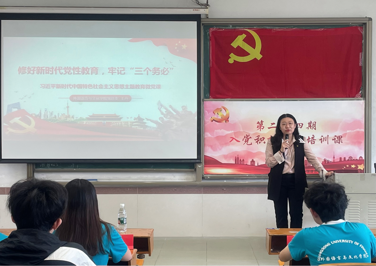 王丹副书记围绕“修好新时代党性教育,牢记‘三个务必’”主题,围绕党性和“三个务必”的重要内涵及内在关系两个部分向同学们进行讲解。王丹副书记对入党积极分子们给予厚望,鼓励入党积极分子把个人理想与人民利益紧密结合,努力掌握科学知识,锤炼过硬本领。