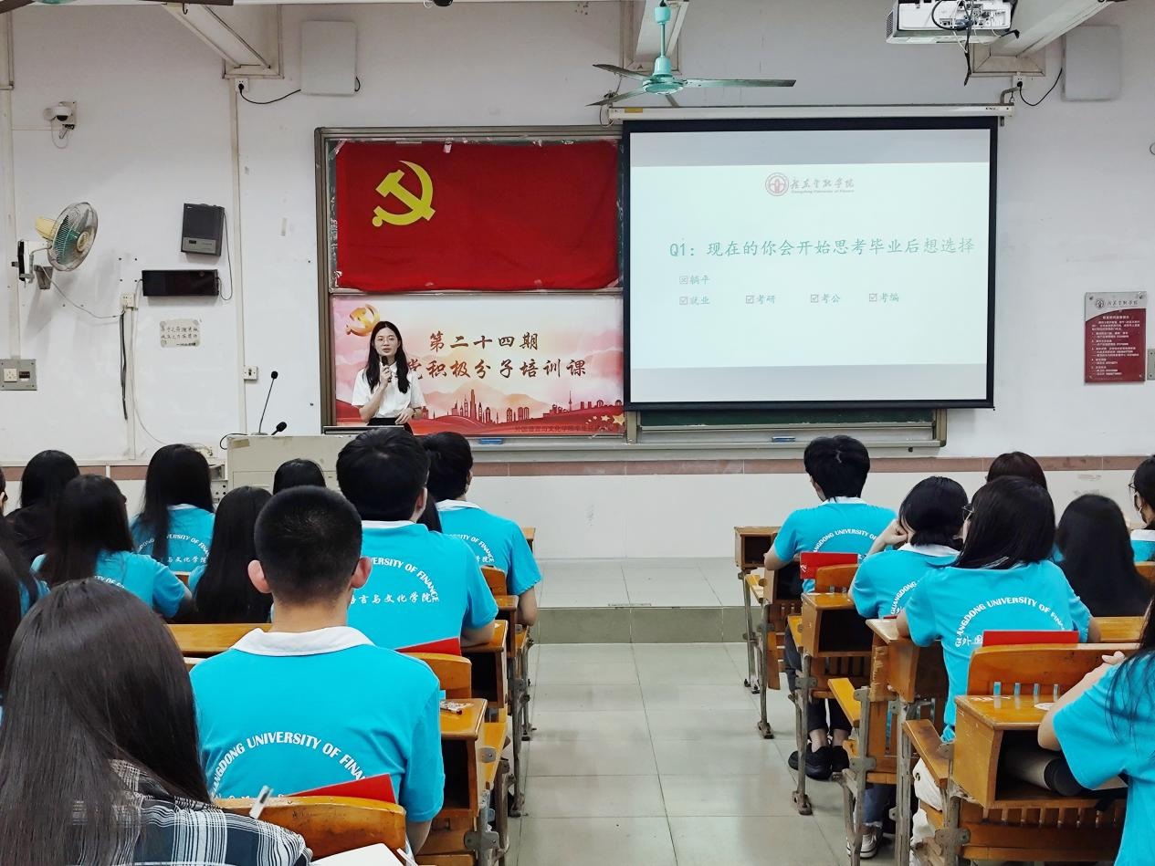 我院黄庆雄书记、王丹副书记、学生第一党支部书记邓伟琦老师、学生第二党支部书记邓粲士老师、19级学生党员吴少莹分别为全体入党积极分子做专题辅导。
