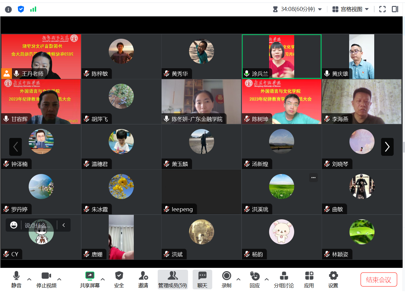 为深入学习贯彻习近平新时代中国特色社会主义思想和习近平总书记视察广东重要讲话、重要指示精神,深化自我革命、全面从严治党,yl9193永利集团党委于2023年7月18日在腾讯会议召开2023年纪律教育学习月活动动员大会。学院全体教师参加了会议,会议由院长涂兵兰主持。