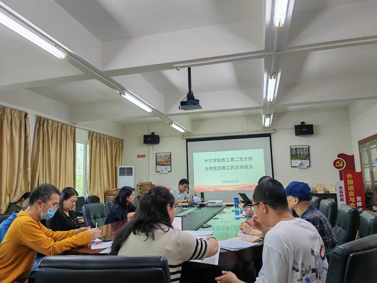 随后,党支部进行全体党员民主评议环节,党支部书记陈树坤同志对2023年度有关党员民主评议工作的重要性和必要性做了详细的介绍,强调党员民主评议工作是党支部的一项重要工作,是加强党员队伍建设、提高党员素养的重要途径。全体党员按照个人自评、党员互评、民主测评的程序进行了评议。每位党员按照党员标准,认真对照检查,总结了自己过去一年中在思想、工作、学习、遵守党章党纪等方面的表现。此外,陈树坤还向全体党员介绍有关外文学院本科教育教学自评自建方案实施与OBE理念