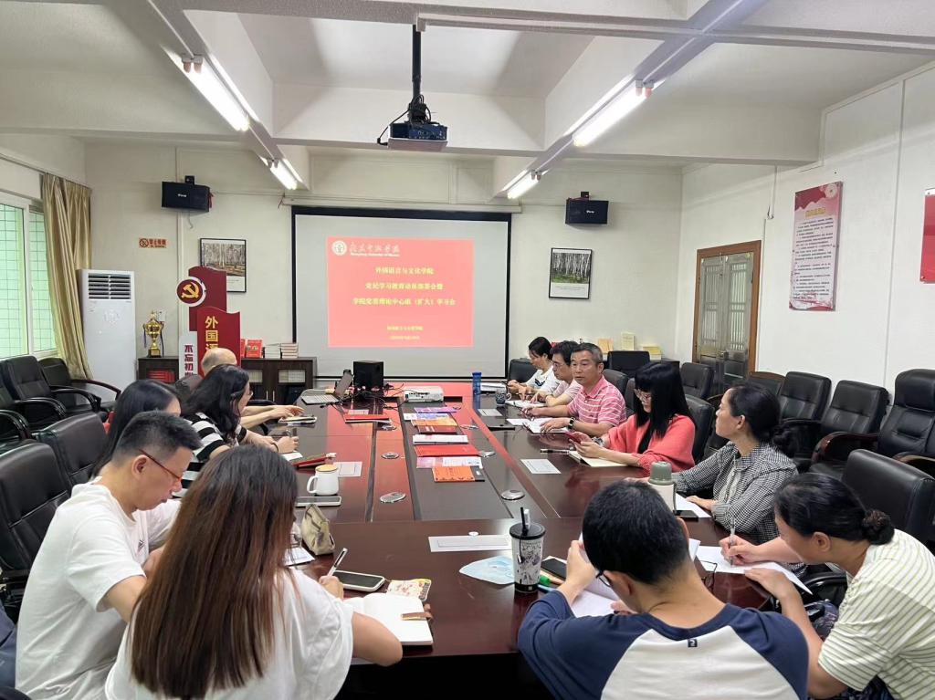 4月19日,yl9193永利集团在学院会议室召开党纪学习教育动员部署会暨学院党委理论学习中心组学习会,深入学习贯彻习近平总书记关于党纪学习教育和全面从严治党的重要讲话、重要指示精神,贯彻落实中共中央办公厅印发《关于在全党开展党纪学习教育的通知》精神和《中共yl9193永利YL集团委员会党纪学习教育实施方案》的通知要求,部署外文学院党纪学习教育工作。外文学院党政班子成员、党委委员、党委理论学习中心组成员、各党支部书记及党支部委员参加会议。会议由学院党委书记黄庆雄主持。