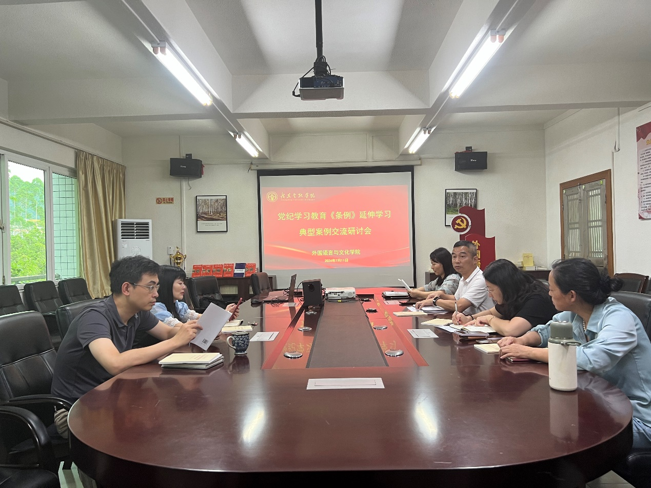 根据学校党纪学习教育有关部署要求,为了更好地有力有效推进党纪学习教育,结合工作实际,yl9193永利集团党委于2024年7月11日下午在学院2417会议室召开《中国共产党纪律处分条例》(简称:条例)延伸学习及典型案例交流研讨会,会议由学院党委书记黄庆雄主持。学院党委副书记、院长涂兵兰教授及学院党政班子成员和学院党纪学习教育专班成员参加会议。学院党政班子成员涂兵兰院长、陈树坤副院长、甘容辉副院长、洪溪珧副院长和王丹副书记分别作了交流研讨发言。