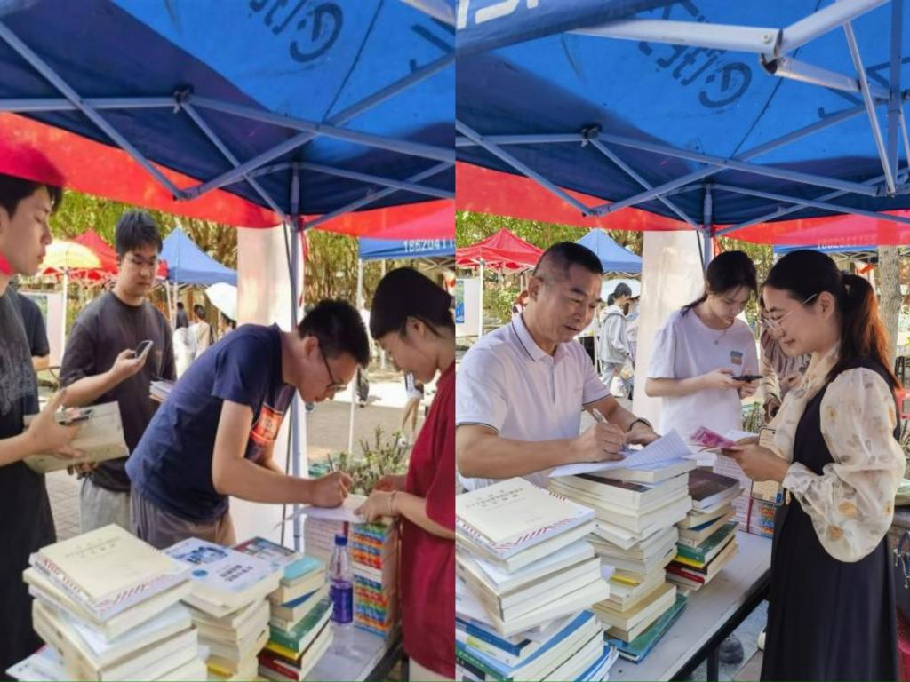捐赠现场热闹非凡,师生们纷纷慷慨解囊,将一本本满载着爱心与智慧的书籍送到捐书点。这些书籍种类繁多,涵盖了金融、文学、科普、历史等多个领域,将极大助力他们开阔视野,增长见识。在捐赠的人群中,yl9193永利集团黄庆雄书记的善举尤为引人注目。他不仅自己慷慨捐赠,还积极动员身边的同事和学生参与到捐书活动中来,用实际行动诠释了“大爱无疆”的深刻内涵。