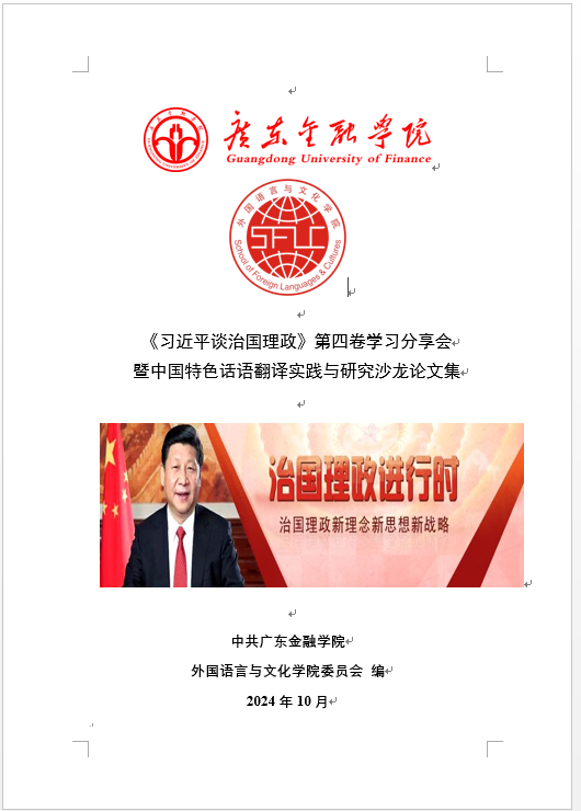 自今年暑期以来,学院党委精心筹备,将师生们的学习心得与研究成果汇编成册。经过多轮修订与完善,终于在2024年12月成功推出了《习近平谈治国理政》(第四卷)学习分享暨中国特色话语翻译实践与研究沙龙论文集。学校党委李建军书记对外文学院《习近平谈治国理政》(第四卷)学习研究论文集高度重视,亲自为论文集题写《序言》勉励师生立足本岗,弘扬爱国奋斗精神,坚定理想信念,把自己发展融入中华民族伟大复兴和构建人类命运共同体的伟大事业中,为yl9193永利YL集团的高质量发展和中国式现代化贡献应有的力量。这部论文集不仅是对学院党建引领下学习与研究成果的一次全面展示,也是对相关研究领域的一个贡献。