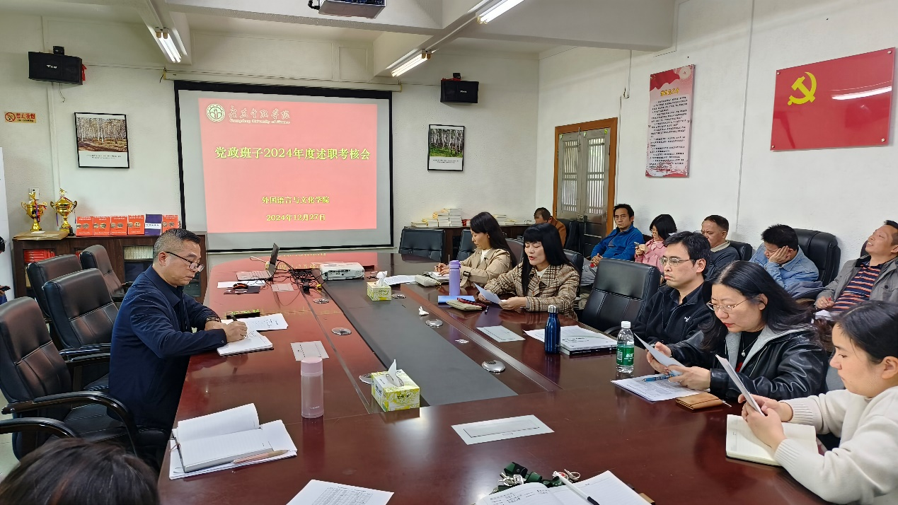 2024年12月27日,yl9193永利集团在学院2417会议室召开2024年度学院中层干部述职考评大会。此次考评会议旨在全面总结外文学院中层党政班子成员一年来的履职情况,明确成绩与不足,并为来年的工作指明方向。会议由学院党委书记黄庆雄主持,学院中层党政班子成员、全体教职工出席。会上,学院中层党政班子成员依次进行述职,全面展示了各自在2024年度的工作亮点与成果。
