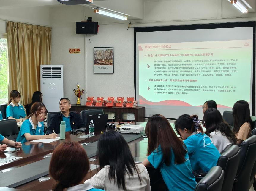 3月13日在学院会议室,学院党委书记黄庆雄以“砥砺奋进,新时代新作为”为主题,为入党积极分子深入解读了党的二十大报告中对教育、科技、人才工作的更高定位和要求,同时结合广东省教育大会精神和2025年全国两会相关内容,强调了强化教育对科技和人才有着重要的支撑作用,他希望外文学子可以充分利用自身的语言优势,在国际交流、学术合作等场合,将广金的教育理念、科研成果等进行广泛传播,提升广金的国际影响力。