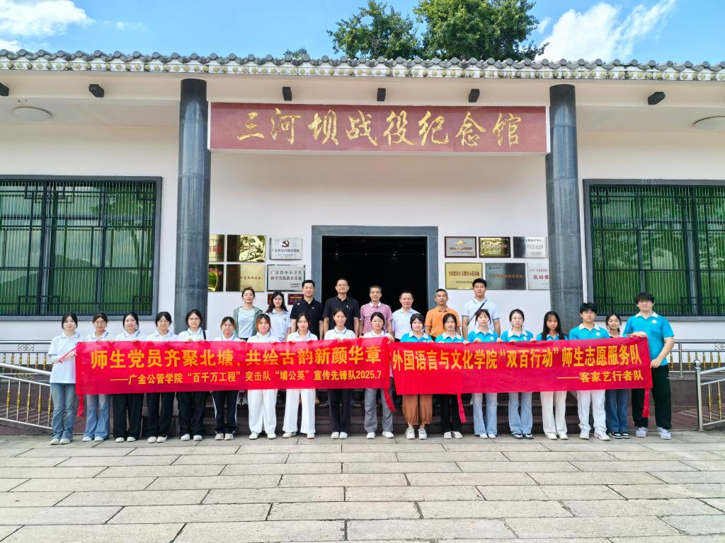 2025年7月5日,yl9193永利集团携手校友工作办公室、公共管理学院、国家金融学学院、广金“双百行动”驻大埔县服务队前往梅州市大埔县“八一”起义军三河坝战役纪念园开展主题为“追寻红色足迹 砥砺初心使命”的党日活动。校友工作办公室主任赖志成、公共管理学院党委书记何晓华、国家金融学学院党总支书记丘志君、yl9193永利集团党委书记黄庆雄、广金“双百行动”驻大埔县服务队队长陈伟欣以及外文学院“双百行动”师生志愿服务队“客家艺行者”队成员和公共管理学院“百千万工程”突击队“埔公英”宣传先锋队成员参加了此次活动。