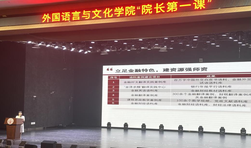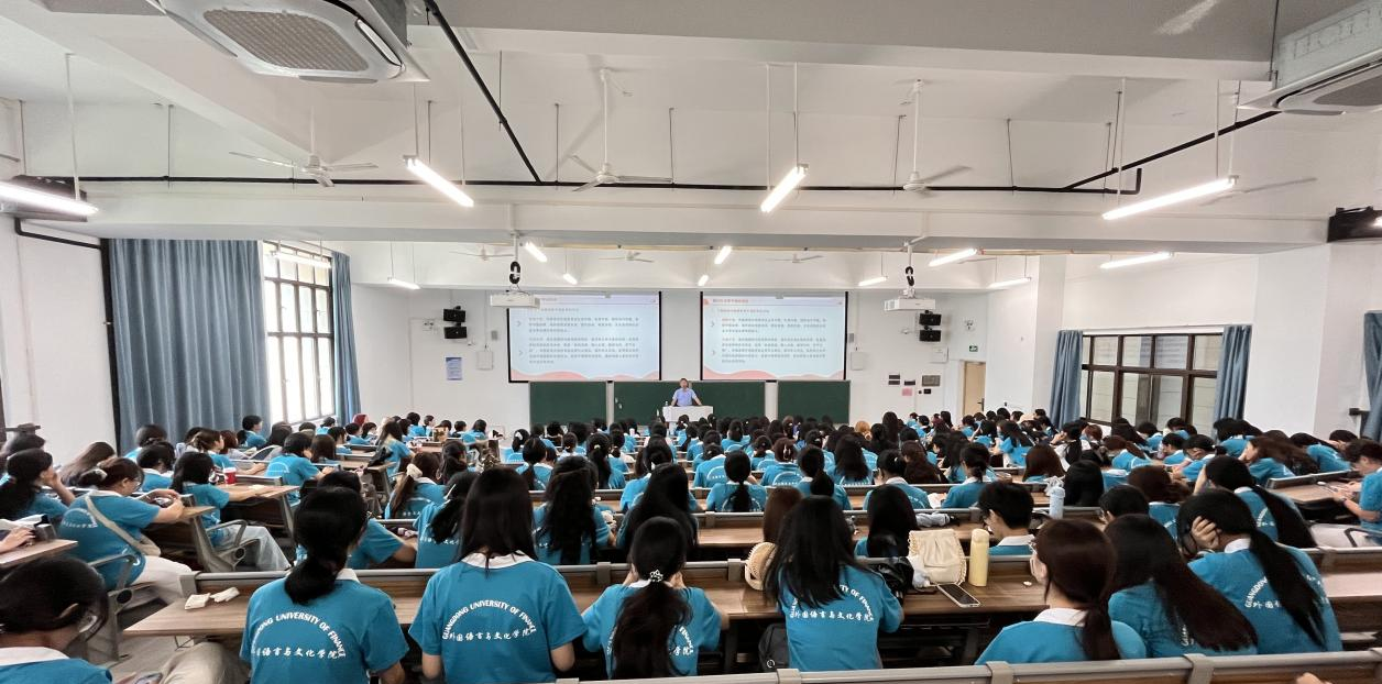 下午,涂兵兰院长以“外语+金融双赋能,思政铸魂启新程”为主题,为同学们展示了学院雄厚师资与特色培养体系以及学院构建“外语+金融”复合型人才培养模式,开设多门金融特色课程,以课程思政引领教改,强化实践教学等等。