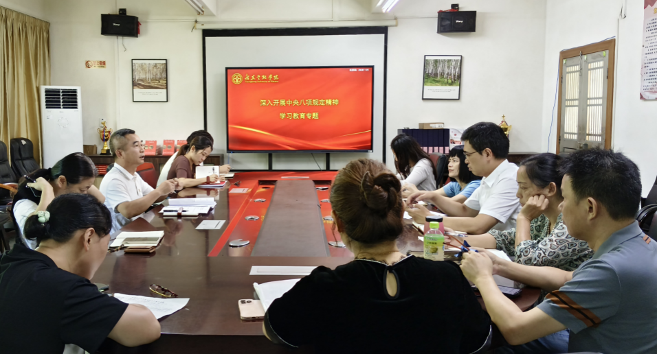 专题学习会还系统总结外文学院从今年3月份以来学习教育开展情况,巩固拓展作风建设成果。会上,学院党委书记黄庆雄代表学院党委通报《深入贯彻中央八项规定精神学习教育开展情况总结报告》。他从三个方面通报学院开展学习教育以来的工作成效:(一)深化理论武装,筑牢思想根基。自今年3月学习教育开展以来,学院党委严格落实“学查改”一体推进要求,组织学院党委理论学习中心组专题学习10次,参加学校中层干部专题读书班,主办“扬清风正气·守廉洁初心”中央八项规定精神主题书画展,以“党纪铭心砺初心,博学笃行谱华章”为主题举办第八届“博雅杯”知识竞赛,实现党员干部学习全覆盖。通过“三会一课”、主题党日等载体,组织学院“双百行动”“百千万工程”师生志愿服务队分别前往大埔县、广宁南街街道护国社区开展社会实践活动,用青春力量赋能助力文化传承与乡村振兴贡献力量。深入开展《中央八项规定及其实施细则》专题研讨,组织党员干部赴廉政教育基地开展沉浸式教学3次,推动作风建设理论入脑入心。形成学院“党委牵头抓总、支部具体落实、党员全员参与”的工作格局。(二)坚持问题导向,狠抓整改落实。对照问题导向问题,学院党委牵头查摆梳理出“毕业论文审核工作流程繁琐”等事项,全面查摆“四风”突出问题,重点纠治“政绩观偏差”“形式主义”“违规吃喝”等顽疾,建立问题清单,深挖思想根源,对学习教育学院班子集体问题清单台账3条进行落实整改、对班子成员个人查摆的问题清单7条落实个人整改,此外学院党委对各党支部的54名教工党员和29名学生党员查摆的83条问题进行审核把关、纠偏导正,切实解决师生急难愁盼问题。(三)强化警示教育,增强廉洁意识。组织党员干部观看警示教育片,通过剖析反面典型案例,深刻揭示违规违纪行为的原因和危害,以此教育引导党员干部自觉遵守中央八项规定精神,筑牢廉洁自律的思想防线。6月5日,学院党委组织召开全院教工党员深入学习贯彻中央八项规定精神学习教育会。会上,学院党委书记领学第一议题“党的十八大以来深入贯彻中央八项规定精神的成效和经验”,并结合学习教育开展以来的工作实际,向全体党员系统解读中央八项规定出台的背景、核心要求和实践意义。同时,结合违反中央八项规定精神的典型案例,从师德师风学术道德、教学纪律、服务意识、工作态度、举止言行以及学院25届毕业生就业落实等各个方面,强调学院全体党员教师要深刻领会中央八项规定精神的实质,坚定以德立身、以德施教的信念,坚守师德底线的决心,筑牢拒腐防变的思想防线,切实改进工作作风,提高工作效率和服务质量,推动学院各项工作高质量发展。