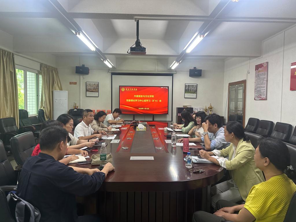 为深入学习宣传贯彻习近平总书记在党的二十届四中全会上的重要讲话和全会精神,引导学院广大党员对全会的重大意义和“十五五”时期在基本实现社会主义现代化进程中的重要地位进行系统学习,外文学院党委于11月10日召开学院党委理论学习中心组集中研讨学习(扩大)会,学习宣传贯彻全会精神,谋划部署落实措施。会议由学院党委书记黄庆雄主持,涂兵兰院长和学院党政班子、党委委员、党委理论学习中心组全体成员、党支部书记及支委参加会议。