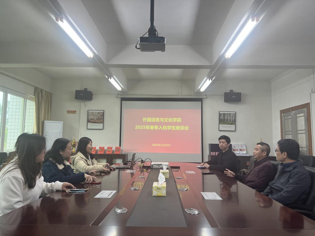 座谈会上,学院党委书记黄庆雄代表学院向即将入伍的洪镕佳同学表示祝贺。他表示:“参军入伍是青年学子践行爱国之志的最高形式,希望洪镕佳同学将‘外语人’的开放视野与军人的忠诚品格相结合,在军营中淬炼本领,用专业知识讲好中国故事。”同时还叮嘱洪镕佳同学,一定要脚踏实地,兢兢业业,不负学校培育,不忘使命担当。