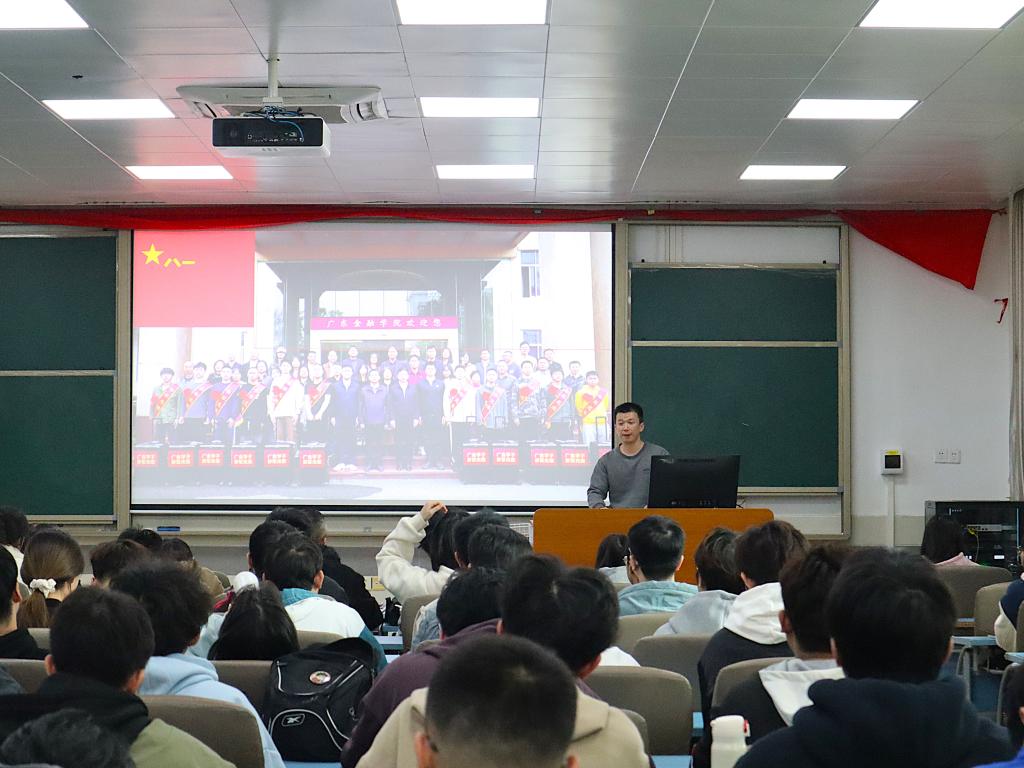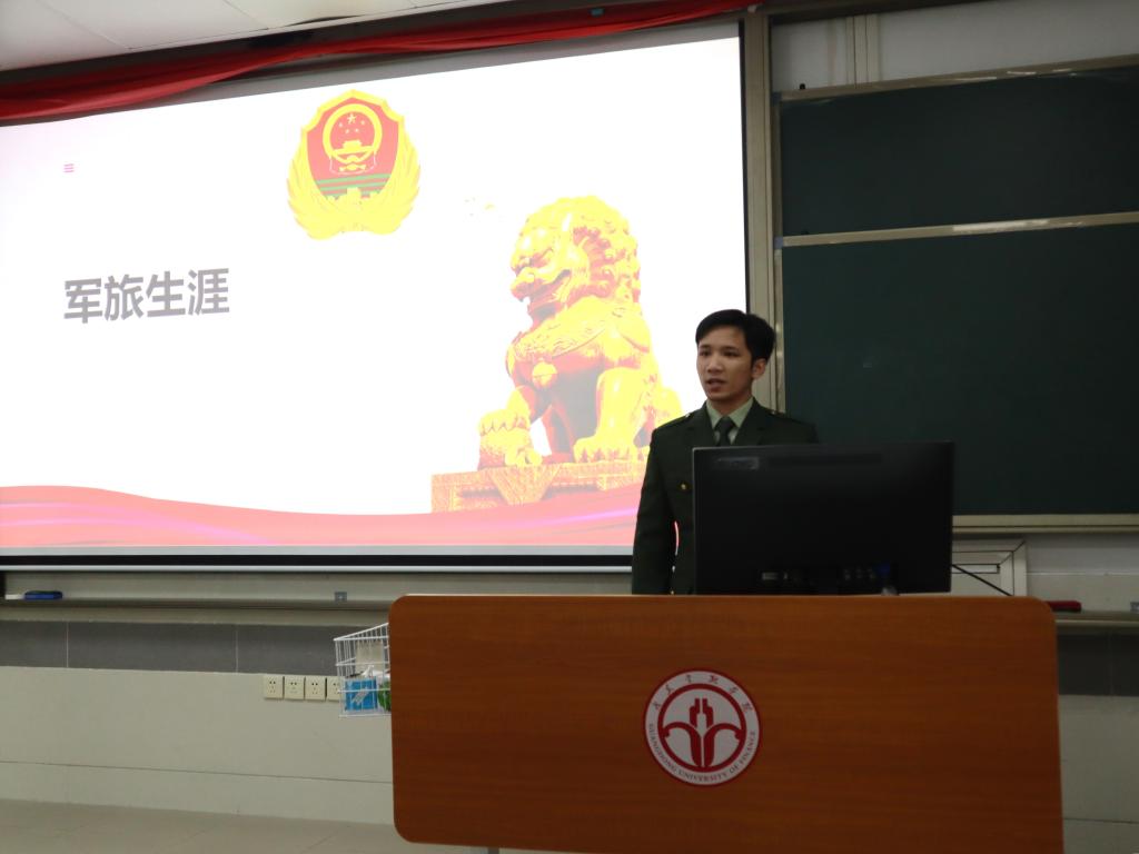 紧接着,学校党委武装部肖军老师以“什么样的大学生最适合参军入伍”为切入点,一一解读了大学生征兵入伍的流程、国家和各地市的政策,为同学们打消疑虑,解除后顾之忧。