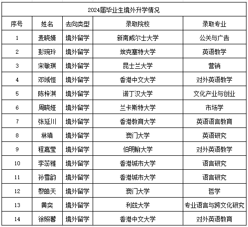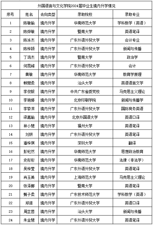 外文学院2024届考取硕士研究生情况一览表