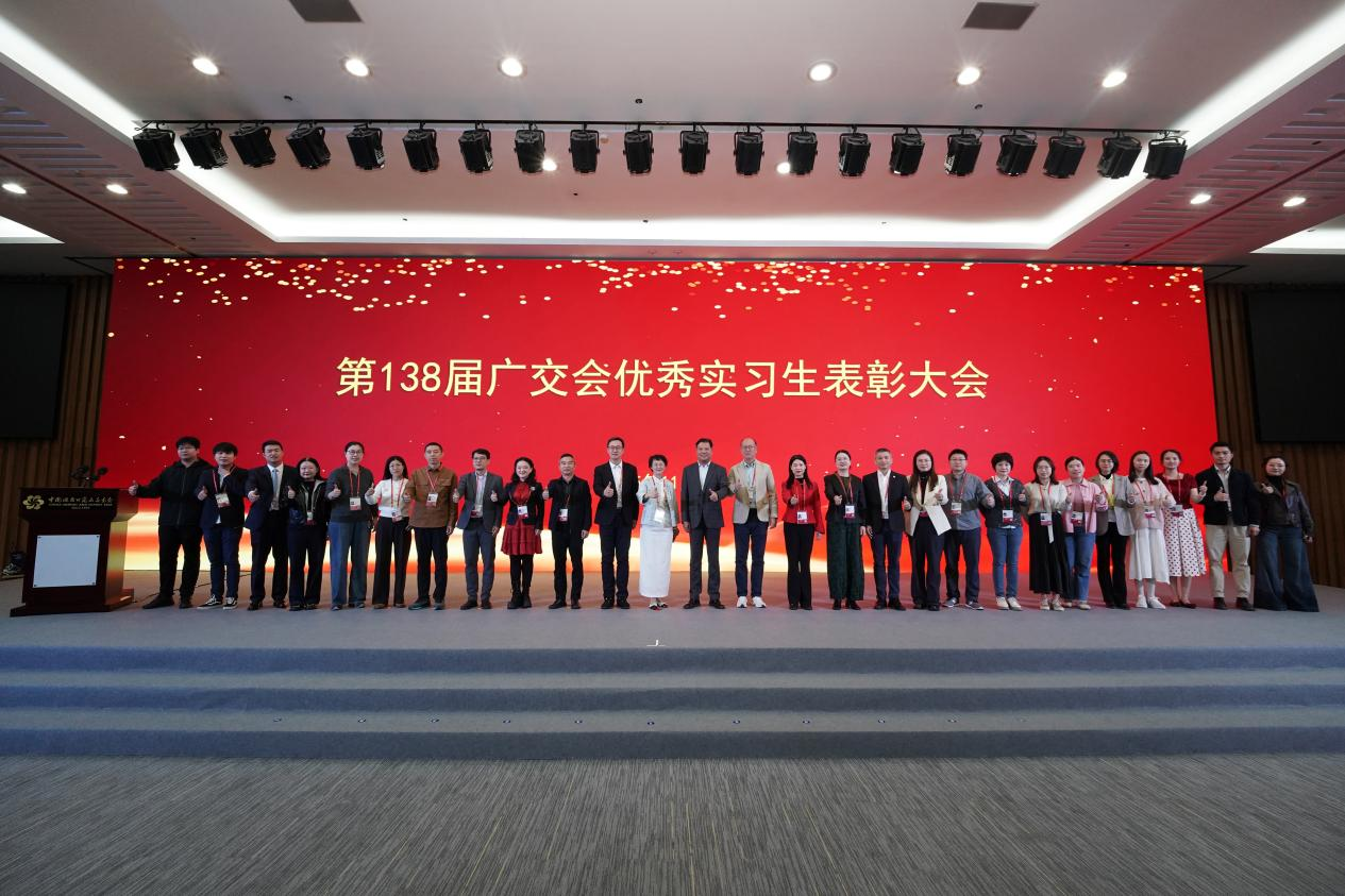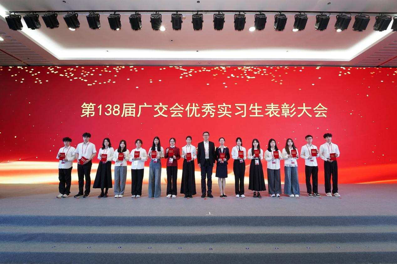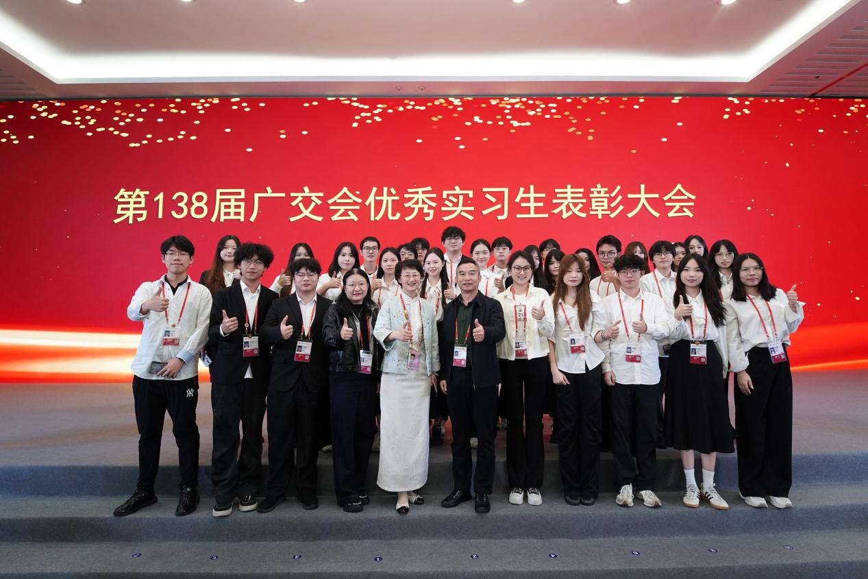 4日上午,外文学院党委书记黄庆雄、党委副书记王丹和辅导员孙嘉程应邀出席在广交会行政办公中心举行的“第138届广交会优秀实习生表彰大会”,并与中国对外贸易中心集团相关领导合影留念。此次活动不仅是对外文学院实习生辛勤付出的充分肯定,更是校企双方在产教融合、协同育人方面取得阶段性成果的生动体现。