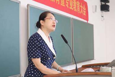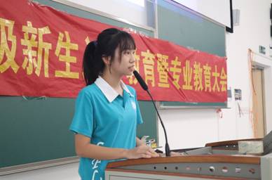 大会第二项议程副院长孙智慧进行专业教育。孙院长从“专业介绍”和“专业学习”两大方面,向新生系统介绍了外院的学科特色及学科优势,强调本专业是人文性与工具性结合的文科专业,要注重外语技能的锻炼与提高,学会“用外语去言说与写作”。孙院长还结合各专业人才培养方案,从“知识构成”、“能力培养”及“学习内容”三个板块,强调指出专业学习的重要之处和学业要求,并表达了对新生的美好祝愿。