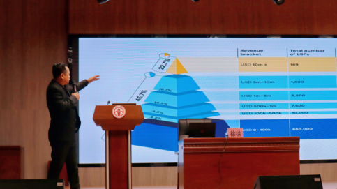 颁奖会后,徐徐先生为我院2021级370名学生开讲题为《走进英语服务行业》沙龙讲座。