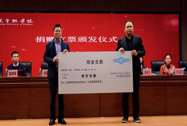 会上,徐徐先生向我校教育发展基金会捐赠人民币2万元支票,由学校校友办公室肖荣勋副主任代表基金会接受支票捐赠。
