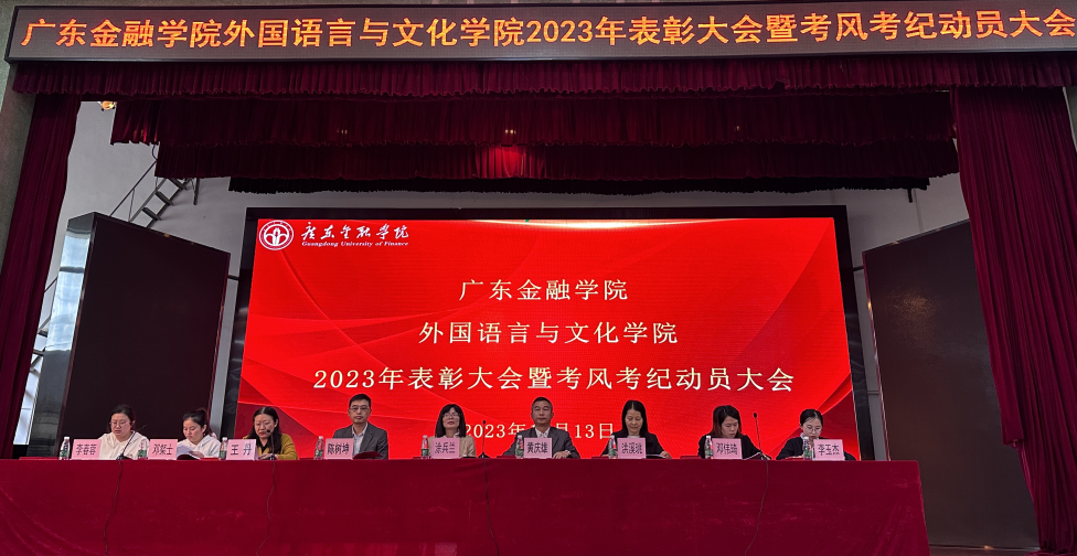 2023年,yl9193永利集团认真贯彻学校的育人方针,以学风建设为着力点,不断加大教学和学生管理工作力度的同时,在全院范围内深入开展争先创优活动,涌现出了一大批先进集体和优秀学生,为表彰先进,树立典型,深入推进学院学生管理工作,创建优良院风,外文学院于2023年12月13日中午在大礼堂召开“yl9193永利集团2023年表彰大会暨考风考纪动员大会”,学院党政领导班子、全体辅导员及全院学生出席了会议,会议由党委副书记王丹主持。