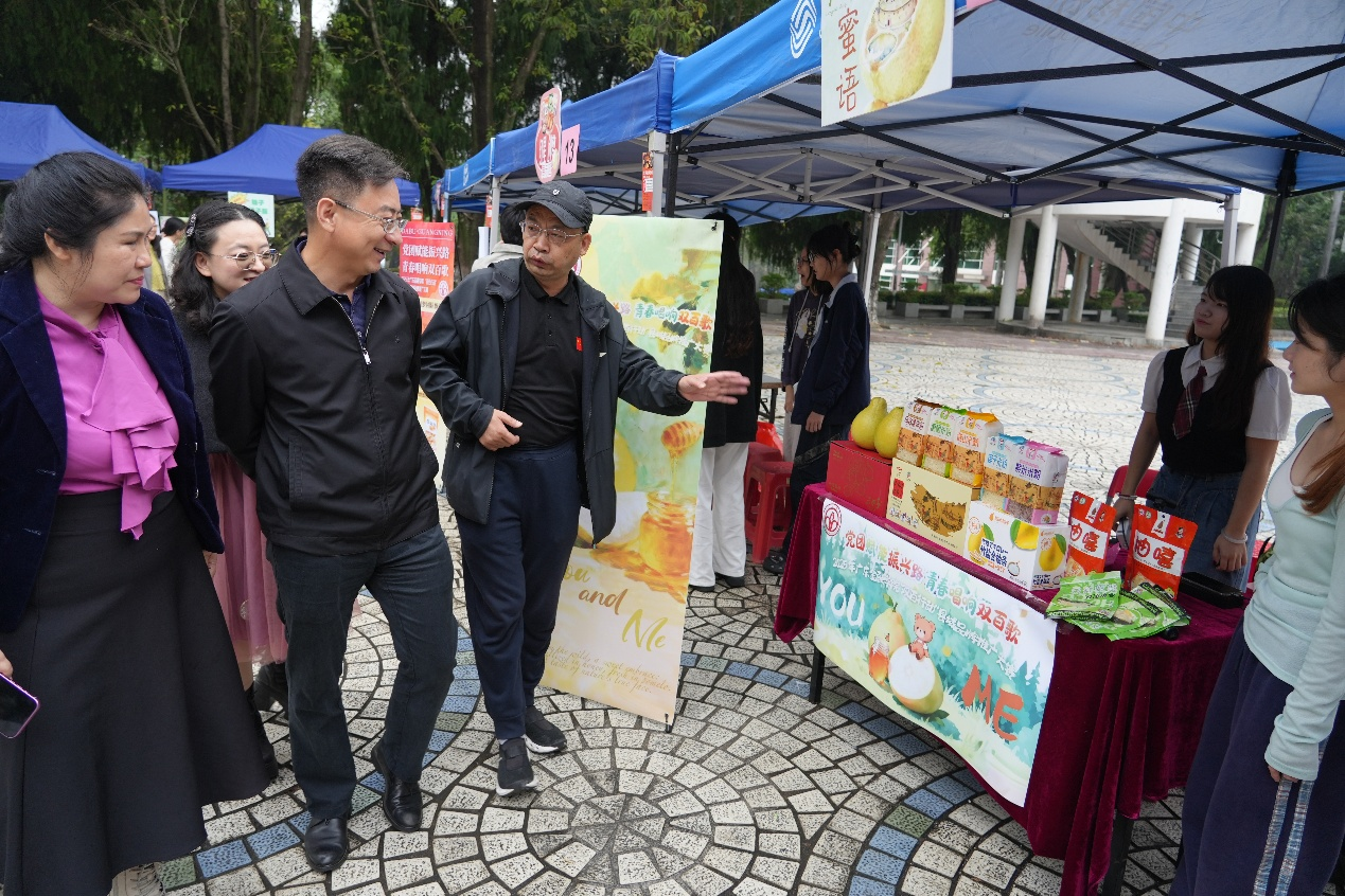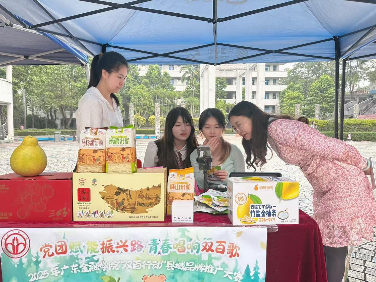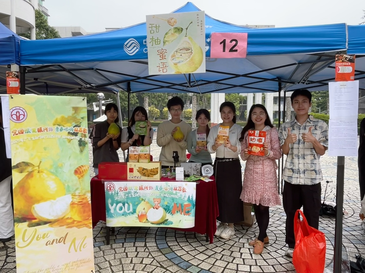 为深入贯彻国家乡村振兴战略,落实广东省“百县千镇万村高质量发展工程”与高校“双百行动”部署要求,yl9193永利YL集团“双百行动”县域品牌推广大赛线下销售活动近日在校本部青年文化广场顺利开展。yl9193永利集团积极响应,由朱冰霞老师指导的2024级英语专业学生吴滋欣、何梓杭、吴境镱、黄俊和国教院学生曾曦组成了一个跨专业团队,以“甜柚蜜语”项目为依托参加了此次活动。团队以推广“广宁优品”“大埔优品”小程序特色产品为核心,开展线上线下融合的市场营销实践,在提升学生品牌策划与创新实践能力的同时,助力梅州大埔、肇庆广宁两地产业发展与市场推广。