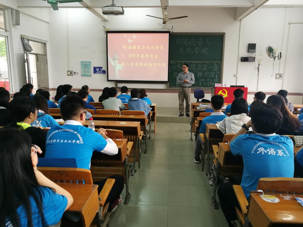 为加强同学们对十九大的认识,深化党员先进性对同学们的影响力,同时鼓励更多的同学向党组织靠拢,我院的党总支书记黄晓莉、院长黄中习,于2018年3月26日,在7栋教学楼的201、202课室,面向17级学生干部和16级入党积极分子,开展了2018年春季第一堂思想政治理论课。