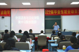 本次就业动员大会旨在为2022届毕业生分析当下外文学院的学子的就业形势,择业方向。会议开始,由黄中习院长致辞,他分析了外文学院学生就业的竞争优势,推荐了择业方向,鼓励大家树立积极的就业观,勤跑招聘会,多投简历,积累工作经验,提醒毕业生一定要“就业”和“毕业” 两不误,并给予了对大四学子真诚的祝愿。