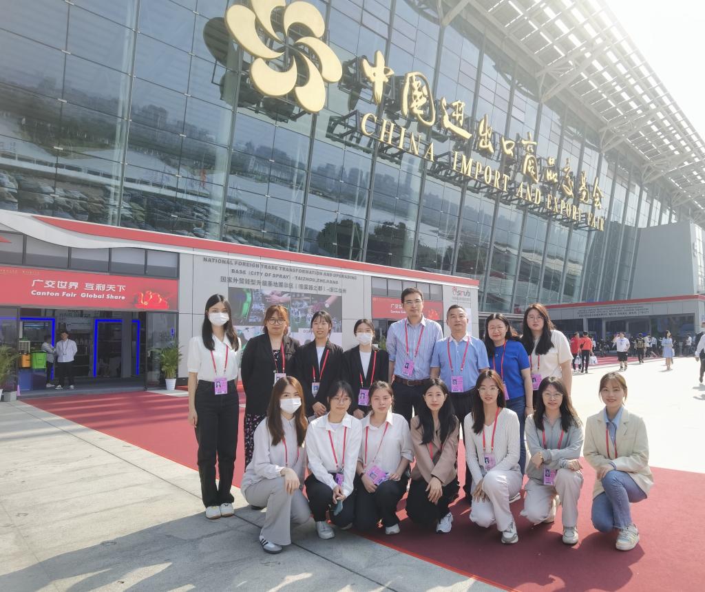 广州第133届交易会于4月15日隆重开幕,本届广交会我院共派出107名2020级学生参加实习实践,负责境外采购商办证、咨询导向、展厅咨询、广交会调研、组展事务运营等多个岗位的工作。为深入了解学生在广交会岗位实习情况,调研企业用人需求,稳步推进校企合作,提升教育教学质量,促进学校高质量发展,4月17日下午,外文学院党总支书记黄庆雄、副书记王丹、副院长陈树坤、辅导员李春蓉一行4人到广交会琶洲展馆走访调研。