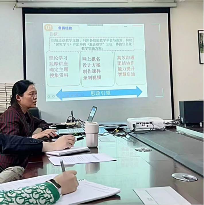 甘荣辉副院长团队获得全国外语课程思政优秀教学案例一等奖,该教学案例奖级别高、为国家级别奖项。她的讲座围绕“比赛通知介绍”、“参赛过程介绍”、“科学备赛建议”三个主题展开。甘荣辉结合自身丰富的科研经验,就如何做好备赛,如何围绕思政教学为主题实施方案进行分享。她认为利用各智能教学平台与资源,构建“探究学习+产出导向+混合教学”三位一体的信息化教案是获奖的重要因素。