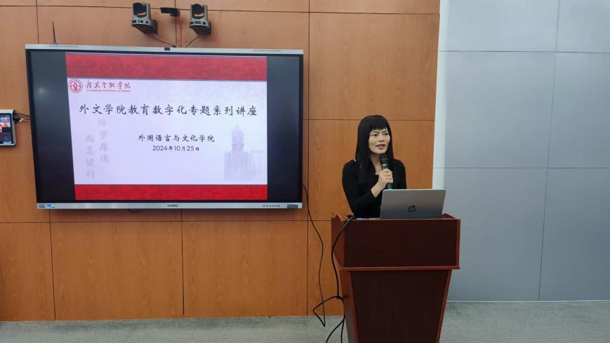为了进一步弘扬教育家精神,提升外文学院教师的数字素养,并推动外语教育的数字化转型,10月25日,外文学院与教师发展中心联合举办了一场教研活动,主题为“外文教育数字化专题系列讲座”,旨在探讨数字化教育的最新趋势,分享学院在数字化教育领域的最新成果,并展望未来的发展方向。