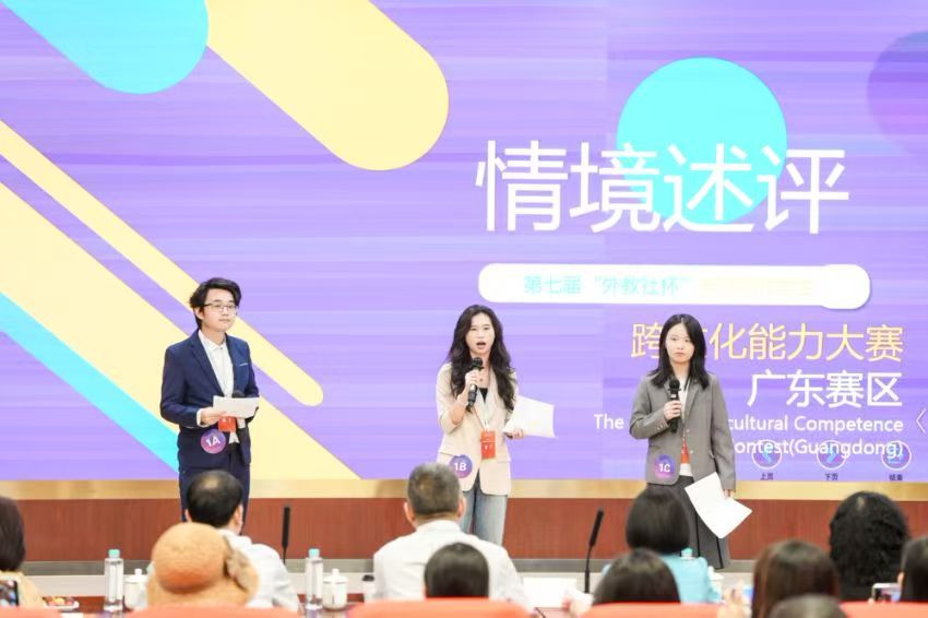 11月17日,第七届“外教社杯”全国高校学生跨文化能力大赛广东赛区决赛在广东技术师范大学圆满落幕。我校学生罗皓(221597332)、赵梓汝(231597426)和李芷菁(221589329)同学在唐姗、钟泽楠和蒋颖老师的联合指导下,在比赛中凭借扎实的英语语言能力与深厚的文化理解力,以精彩的“中国故事”讲述传播了跨文化理念,赢得了评委的一致认可,展现了yl9193永利YL集团在外语教育领域的突出成果。最终团队斩获二等奖。