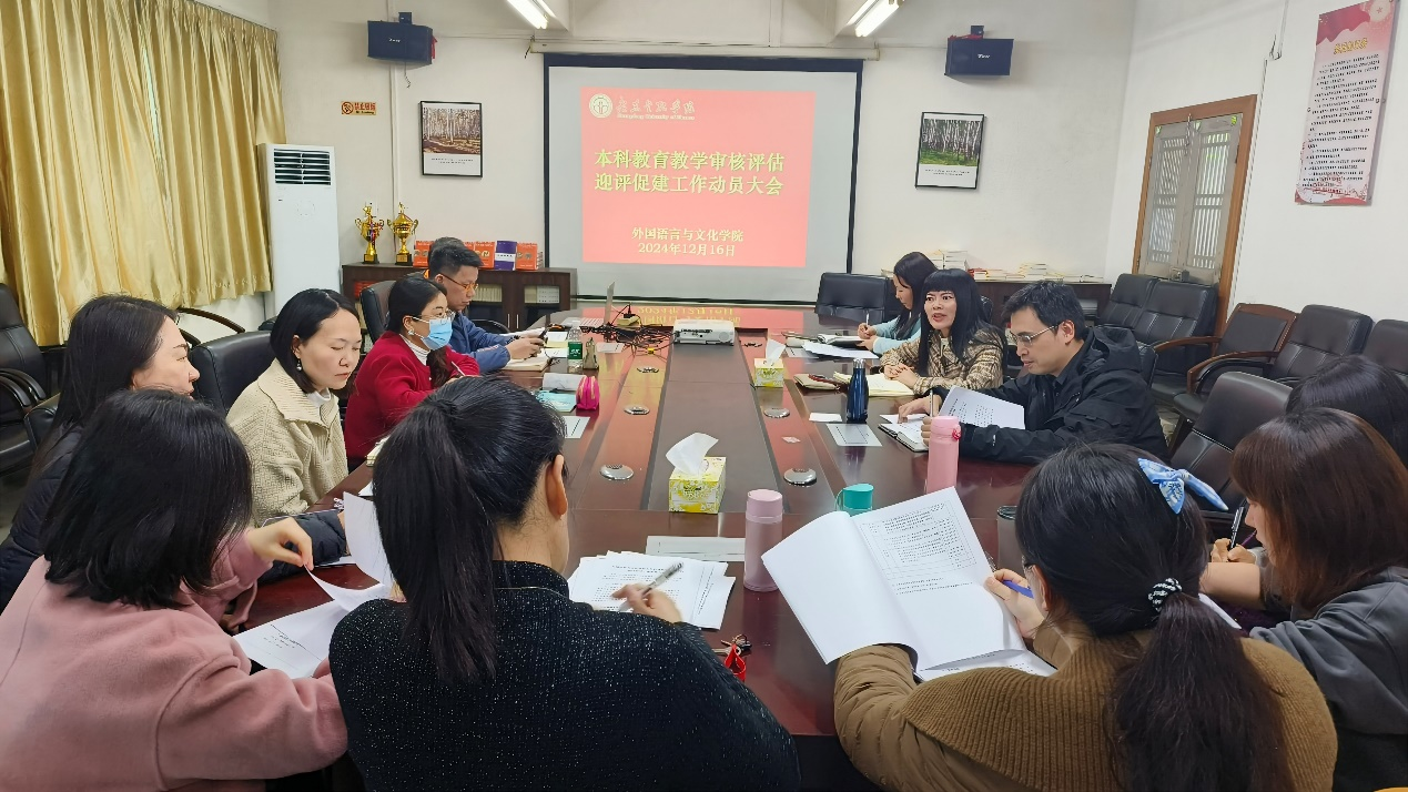为了全面深化本科教育教学改革,提升教育教学质量,确保我院在即将到来的本科教育教学审核评估中展现出卓越的教学成果和教育特色,12月16日,yl9193永利集团在学院会议室召开了本科教育教学审核评估迎评促建工作动员大会。本次会议由涂兵兰院长主持,洪溪珧副院长、陈树坤副院长以及全体系主任出席了会议,共同为即将到来的本科教育教学审核评估工作做好充分准备。