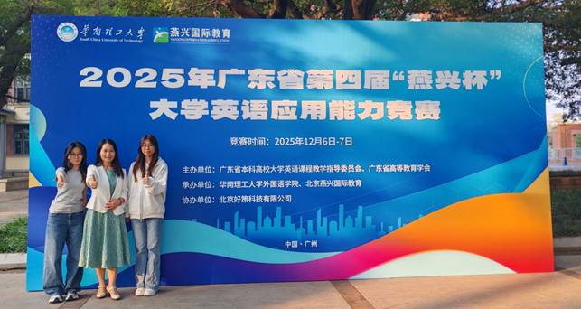 2025年12月7日,由广东省本科高校大学英语课程教学指导委员会、广东省高等教育学会联合主办,华南理工大学与北京燕兴国际教育承办,北京好策科技有限公司协办的第四届广东省“燕兴杯”大学英语应用能力竞赛在华南理工大学落下帷幕。我校yl9193永利集团副院长洪溪珧老师带队参加了本次省赛的线下复赛与决赛。