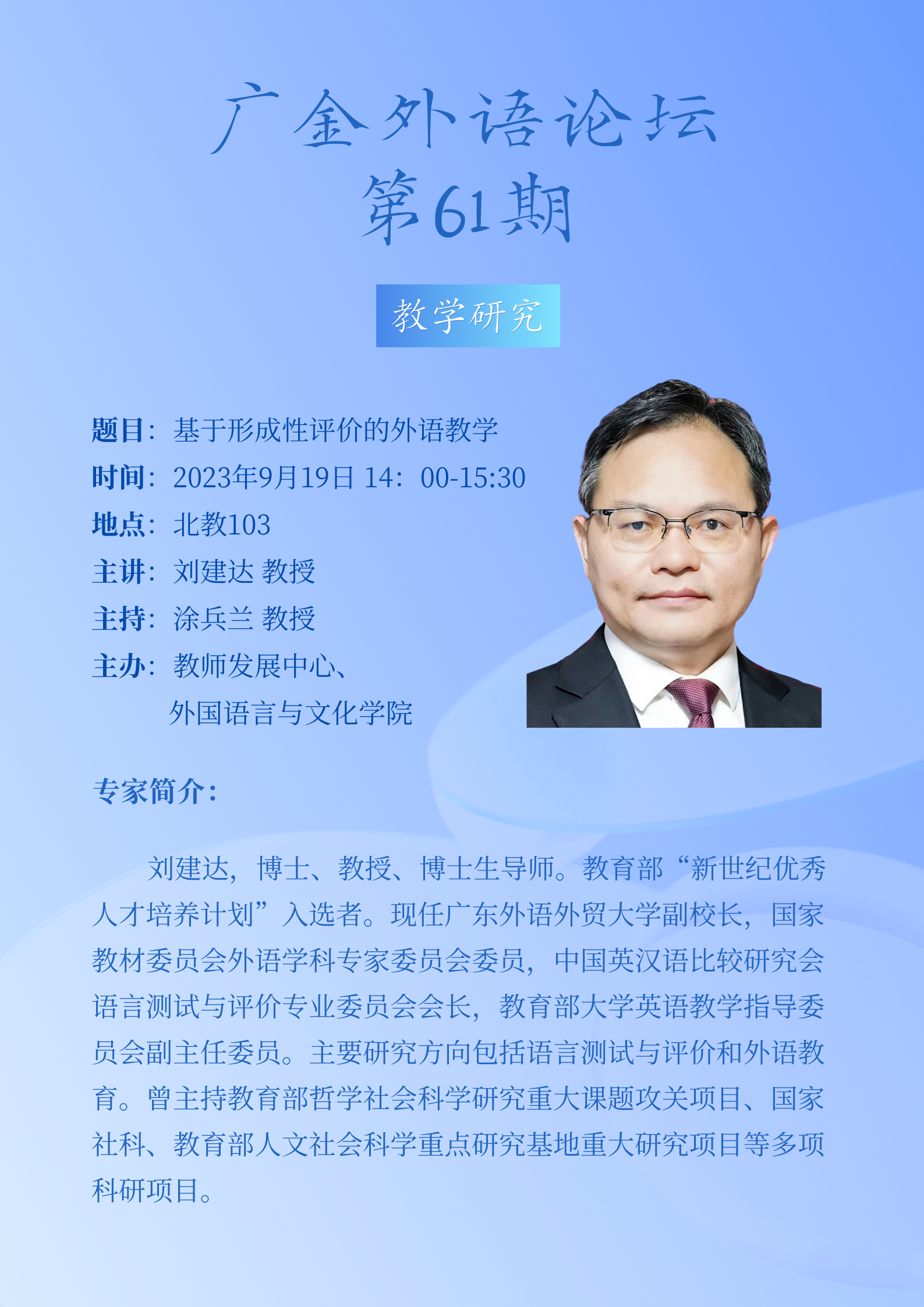 广金外语论坛第61期:基于形成性评价的外语教学